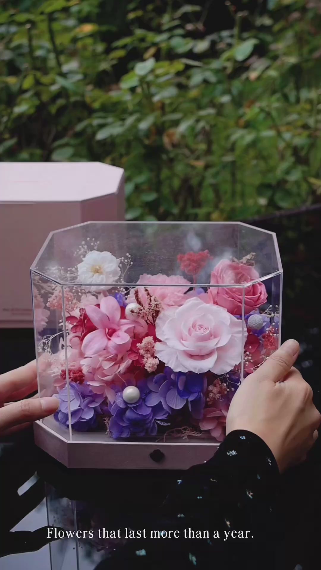 Ideal for anniversaries, weddings, Lunar New Year, or housewarming gifts, this box evokes richness and harmony in both color and composition. Each flower is preserved to retain its natural beauty for years, requiring no watering—just admiration.